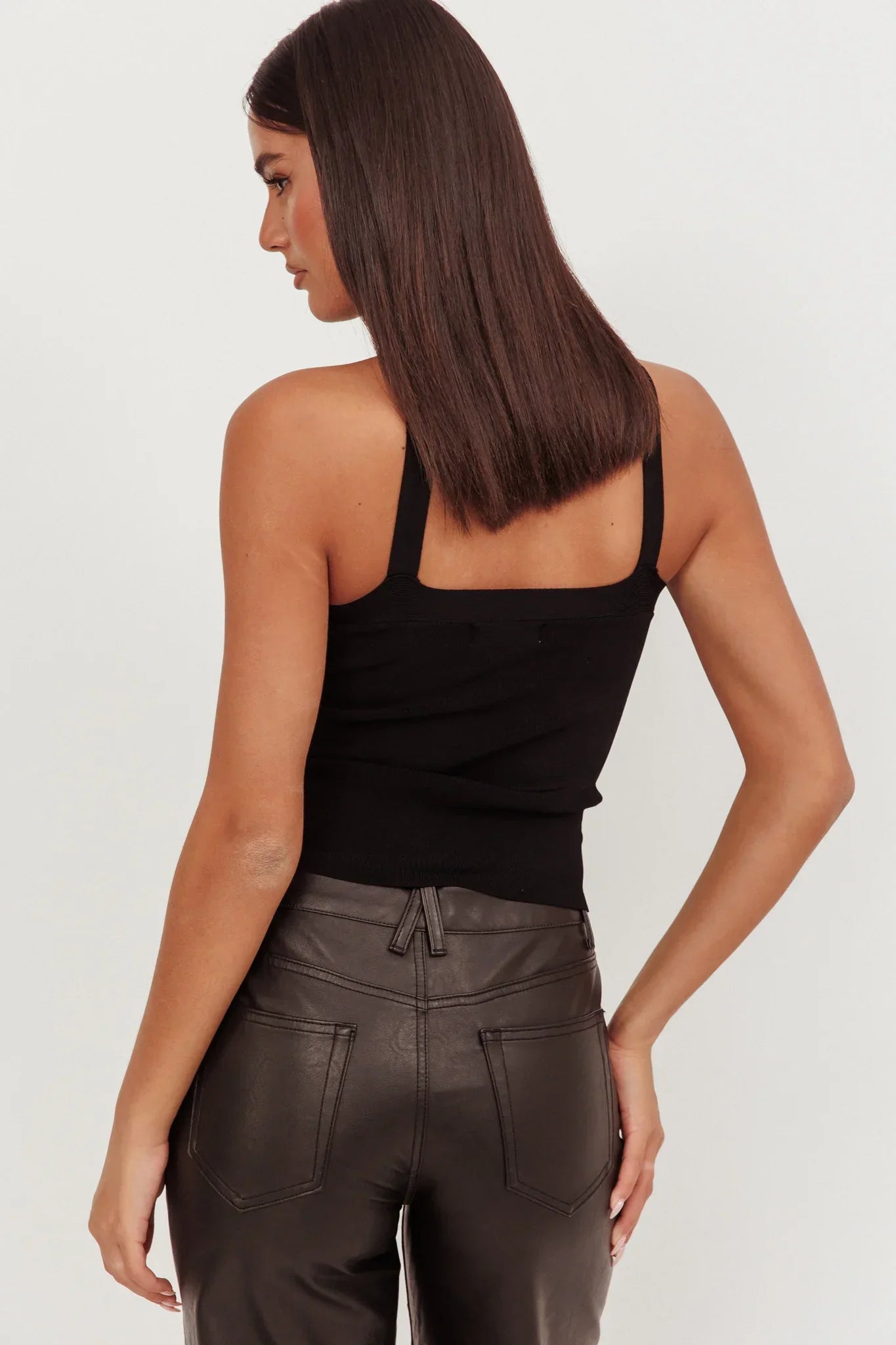 You'll go straight to the best-dressed list in our chic Anora top. It features a pretty rose decoration in the neckline and a stretchy, ribbed fabric. Team it with your fave jeans and pumps for a night out on the town with your girls.
