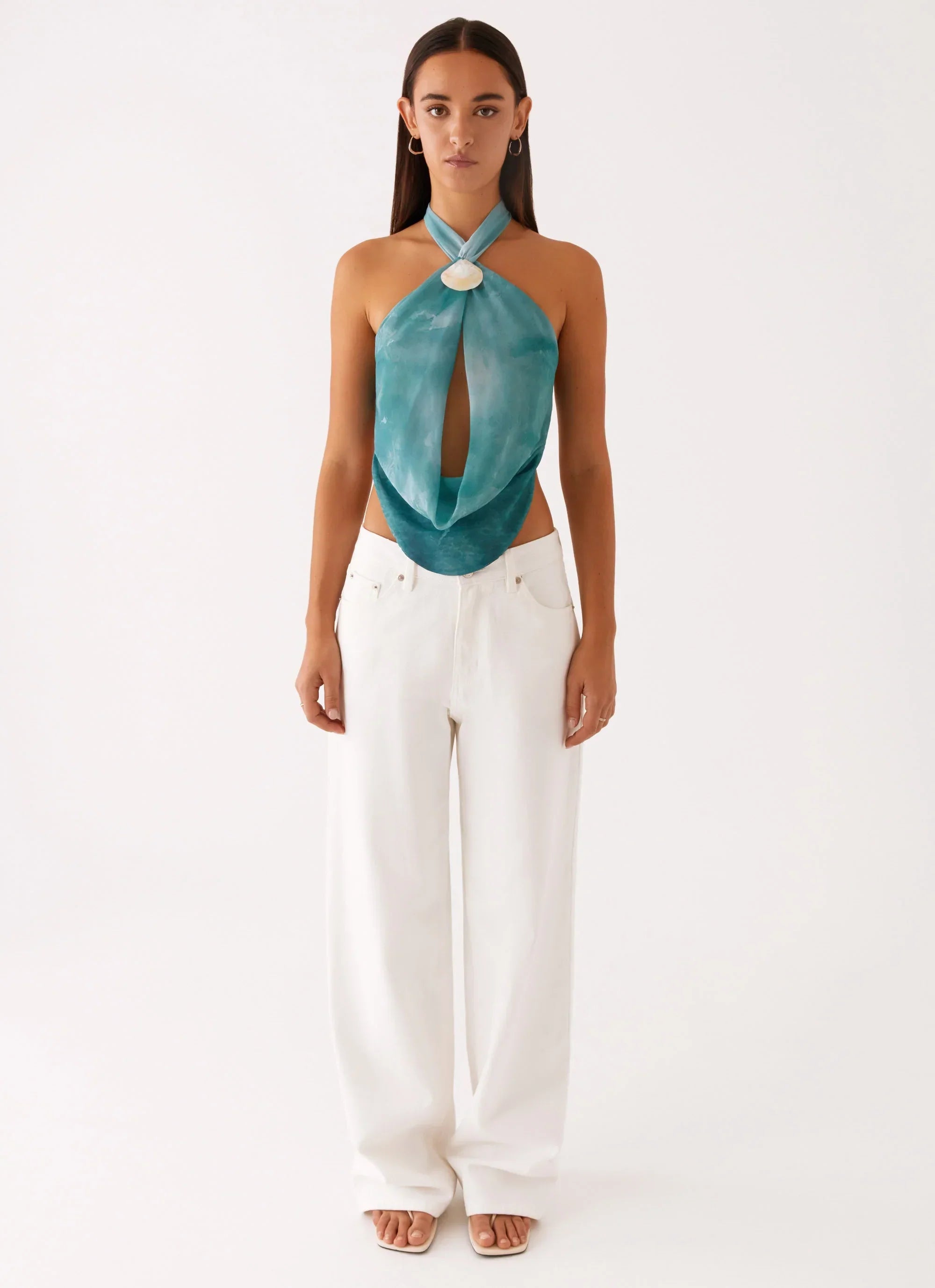The Zola Cowl Neck Shell Top features a sleek cowl neckline with a stylish neck tie, adding a chic touch. Its thick straps provide support, while the open back creates an alluring, modern silhouette.